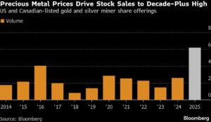 Precious Metal Prices Drive Stock Sales to Decade-Plus High | US and Canadian-listed gold and silver miner share offerings Amanda Stutt | January 7, 2026 | 11:59 am Share Comments Cancel replyYour email address will not be published. Required fields are marked * Save my name, email, and website in this browser for the next time I comment. Δ No comments found. More News Rio Tinto and BHP to lead Australia earnings rebound Both miners enter 2026 set for earnings outperformance, buoyed by commodity prices that help valuations catch up with broader equity markets. February 16, 2026 | 08:49 am {{ commodity.name }} {{ post.title }} {{ post.excerpt }} {{ post.date }} First < {{ page }} > Last