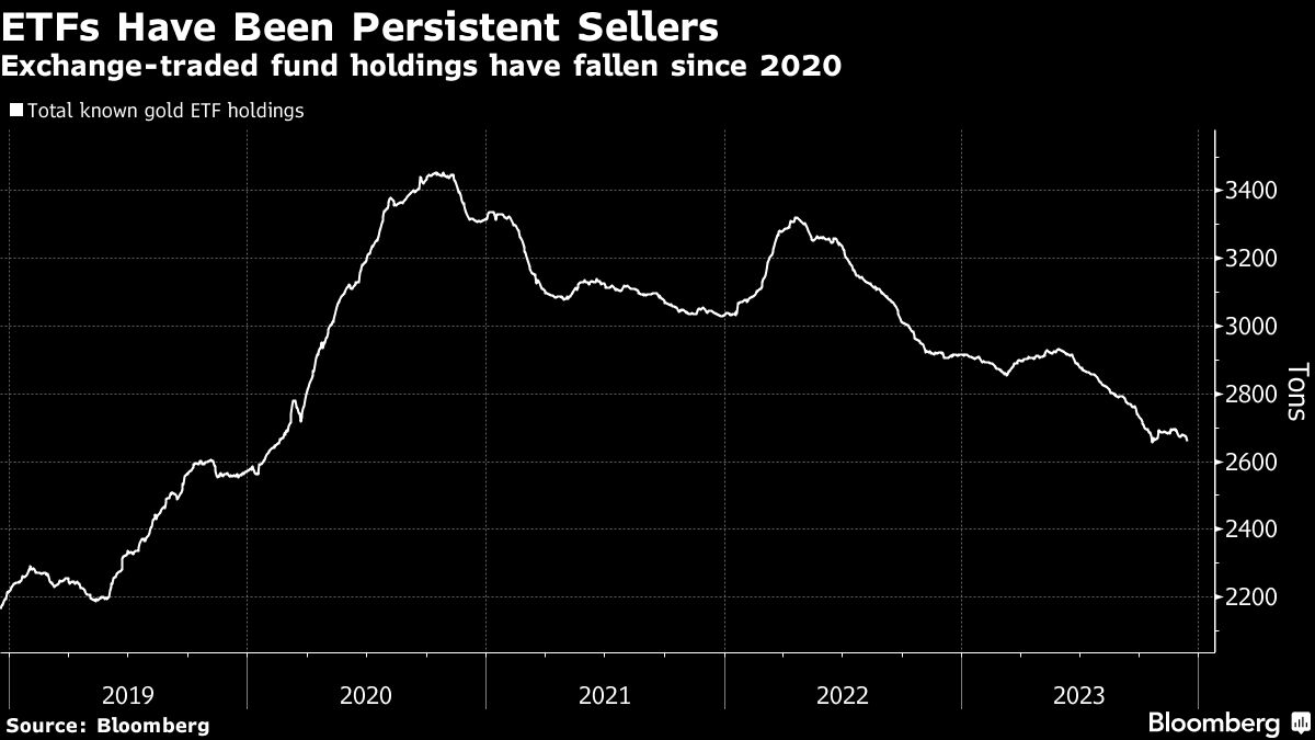 ETFs Have Been Persistent Sellers | Exchange-traded fund holdings have fallen since 2020 Jackson Chen | December 14, 2023 | 10:10 am Share Comments Cancel replyYour email address will not be published. Required fields are marked * Save my name, email, and website in this browser for the next time I comment. Δ No comments found. More News Critical Metals expects to close Greenland supply deals in Q1 2026, CEO says The company has already pre-sold 75% of planned output, split between the US and Europe. December 31, 2025 | 12:08 pm {{ commodity.name }} {{ post.title }} {{ post.excerpt }} {{ post.date }} First < {{ page }} > Last
