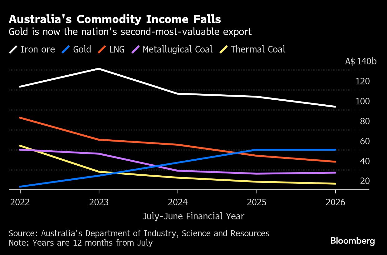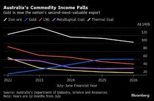 Australia’s Commodity Income Falls | Gold is now the nation’s second-most-valuable export Jackson Chen | October 6, 2025 | 7:03 pm Share Comments Cancel replyYour email address will not be published. Required fields are marked * Save my name, email, and website in this browser for the next time I comment. Δ No comments found. More News Niger stockpiled 1,000t of yellowcake at military base: FT According to FT, Nigerien officials already held discussions with interested buyers from Russia, China, the US and the UAE, but have yet to find a deal. February 16, 2026 | 08:43 am {{ commodity.name }} {{ post.title }} {{ post.excerpt }} {{ post.date }} First < {{ page }} > Last