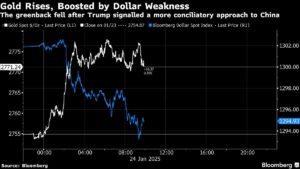 Gold Rises, Boosted by Dollar Weakness | The greenback fell after Trump signalled a more conciliatory approach to China Jackson Chen | January 24, 2025 | 9:35 am Share Comments Cancel replyYour email address will not be published. Required fields are marked * Save my name, email, and website in this browser for the next time I comment. Δ No comments found. More News African Rainbow Minerals founder steps down from executive role Patrice Motsepe has served as ARM's executive chairman since founding the diversified miner in 2003. February 16, 2026 | 07:46 am {{ commodity.name }} {{ post.title }} {{ post.excerpt }} {{ post.date }} First < {{ page }} > Last