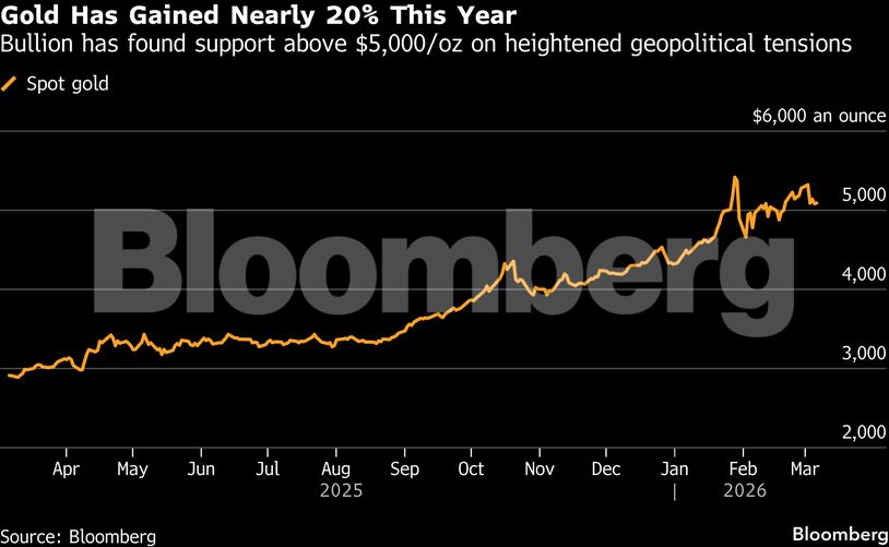 The precious metal came under pressure this week as the Middle East conflict sent oil prices surging and fueled inflation concern, while the dollar rallied. A stronger dollar and higher borrowing costs typically are negative for gold. Bullion also served as a source of liquidity amid a deepening rout in global equities.