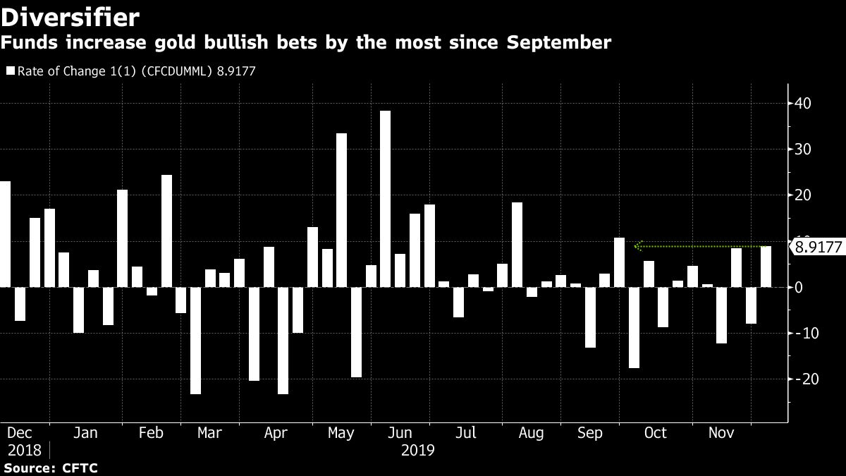 Funds increase gold bullish bets by the most since September Jackson Chen | December 9, 2019 | 9:19 am Share Comments Cancel replyYour email address will not be published. Required fields are marked * Save my name, email, and website in this browser for the next time I comment. Δ No comments found. More News Gold price hovers near $5,000 with US and China closed “The market remains in a phase of rebalancing between bulls and bears, lacking clear catalysts to break the range,” analyst says. February 16, 2026 | 09:43 am {{ commodity.name }} {{ post.title }} {{ post.excerpt }} {{ post.date }} First < {{ page }} > Last