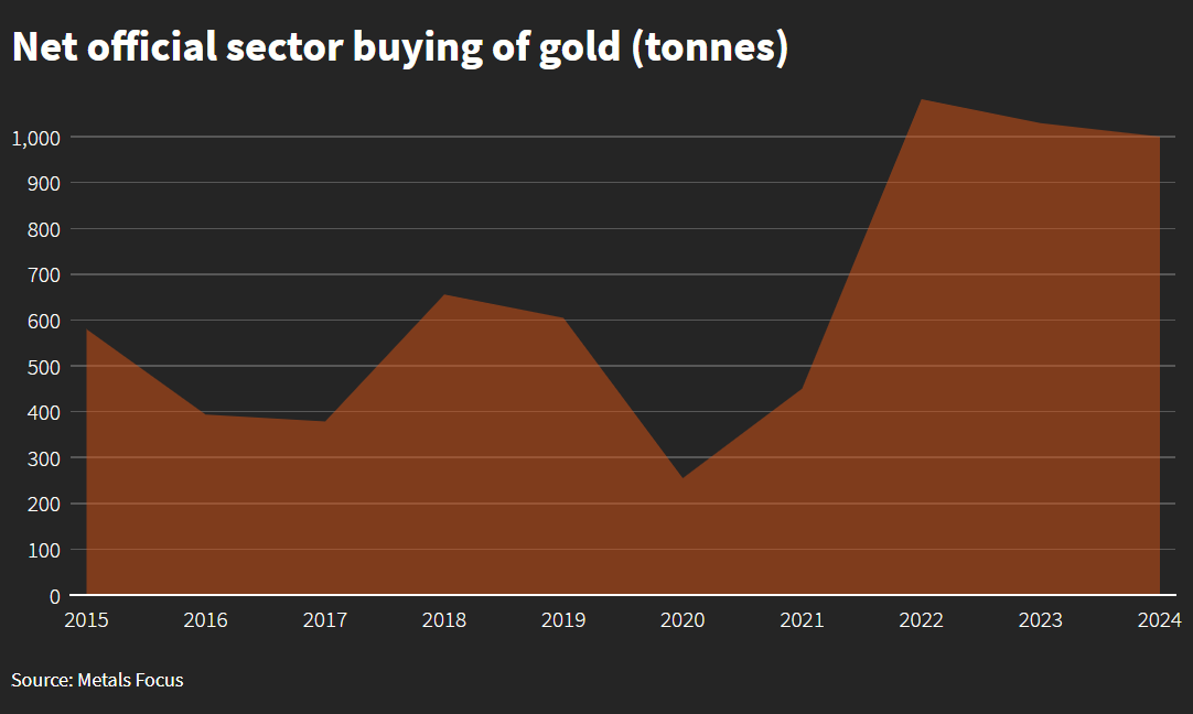Gold-purchases-by-central-banks-as-of-2024 Jackson Chen | October 22, 2024 | 7:50 am Share Comments Cancel replyYour email address will not be published. Required fields are marked * Save my name, email, and website in this browser for the next time I comment. Δ No comments found. More News BHP’s Vicuna unveils $18 billion copper investment in Argentina The project is forecast to average 395,000 tons of copper, 711,000 ounces of gold, and 22.2 million ounces of silver annually over its first 25 years. February 16, 2026 | 01:26 pm {{ commodity.name }} {{ post.title }} {{ post.excerpt }} {{ post.date }} First < {{ page }} > Last