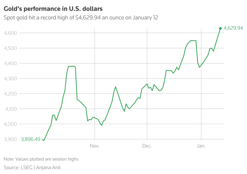 Major brokerages expect gold to reach $5,000/oz in 2026, anticipating that safe-haven demand amid geopolitical tension, monetary policy easing, ETF inflows and central bank buying will carry forward the momentum from last year.