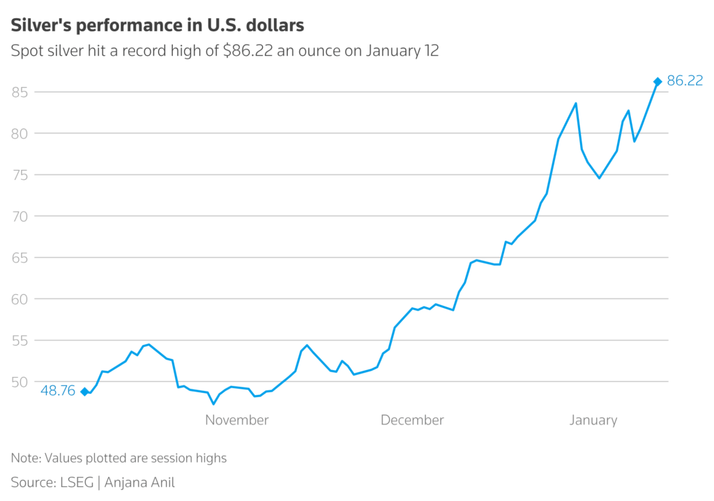 The metal has gained more than 6% in just 13 days of 2026, after breaking through multiple milestones and gaining 64% last year.