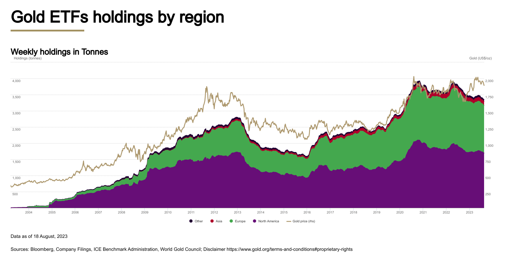 WGC-ETF-holdings-data-as-of-Aug-11 Jackson Chen | August 21, 2023 | 9:59 am Share Comments Cancel replyYour email address will not be published. Required fields are marked * Save my name, email, and website in this browser for the next time I comment. Δ No comments found. More News Gold price hovers near $5,000 with US and China closed “The market remains in a phase of rebalancing between bulls and bears, lacking clear catalysts to break the range,” analyst says. February 16, 2026 | 09:43 am {{ commodity.name }} {{ post.title }} {{ post.excerpt }} {{ post.date }} First < {{ page }} > Last