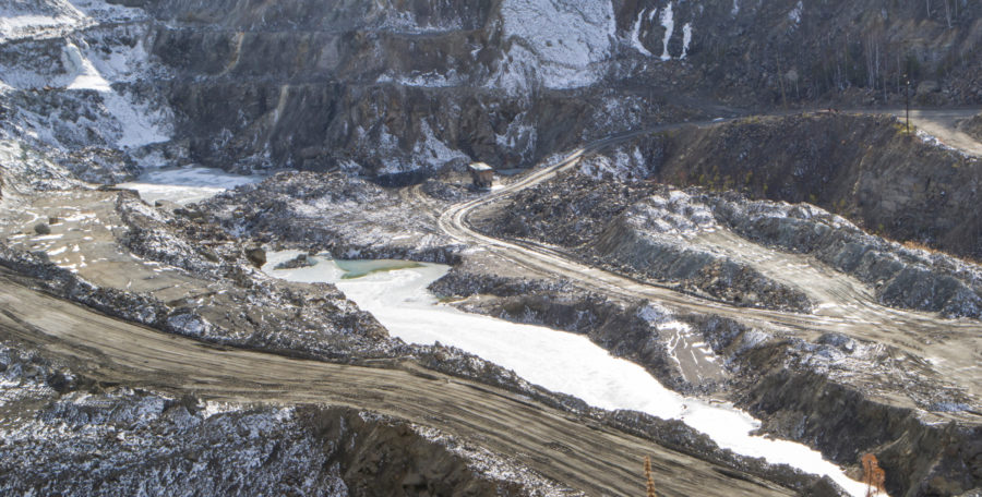 Graphite quarry. Open pit mining of graphite