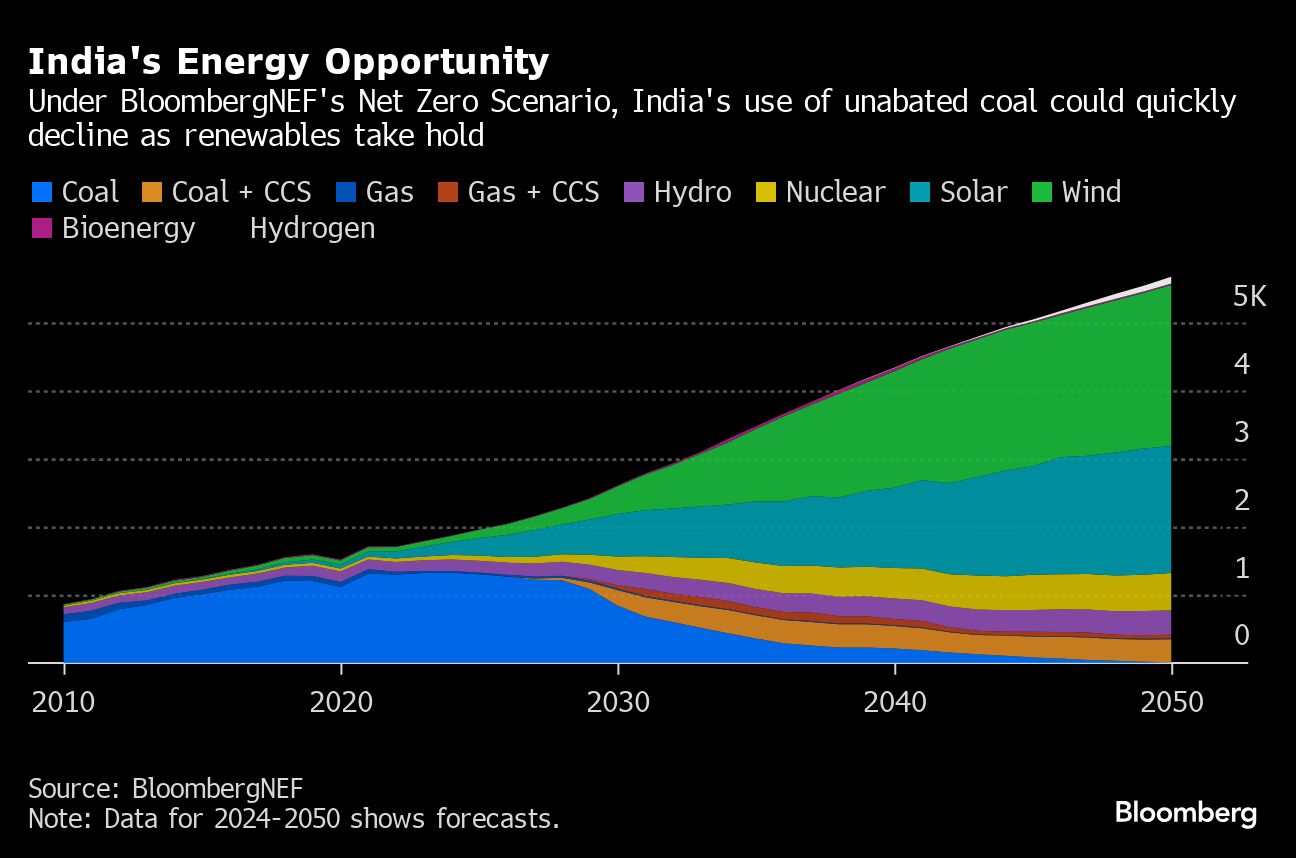 India’s Energy Opportunity | Under BloombergNEF’s Net Zero Scenario, India’s use of unabated coal could quickly decline as renewables take hold