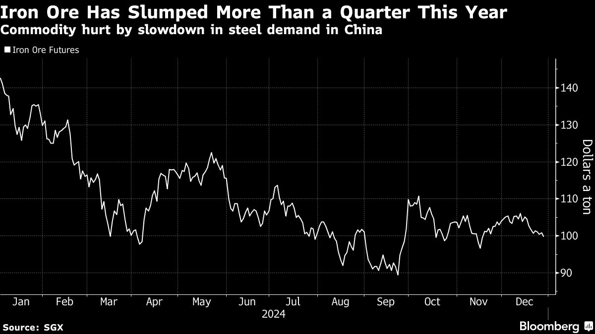 Iron Ore Has Slumped More Than a Quarter This Year | Commodity hurt by slowdown in steel demand in China Bruno Venditti | December 27, 2024 | 4:58 am Share Comments Cancel replyYour email address will not be published. Required fields are marked * Save my name, email, and website in this browser for the next time I comment. Δ No comments found. More News African Rainbow Minerals founder steps down from executive role Patrice Motsepe has served as ARM's executive chairman since founding the diversified miner in 2003. February 16, 2026 | 07:46 am {{ commodity.name }} {{ post.title }} {{ post.excerpt }} {{ post.date }} First < {{ page }} > Last