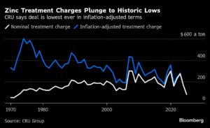 Zinc Treatment Charges Plunge to Historic Lows | CRU says deal is lowest ever in inflation-adjusted terms Jackson Chen | April 3, 2025 | 8:32 am Share Comments Cancel replyYour email address will not be published. Required fields are marked * Save my name, email, and website in this browser for the next time I comment. Δ No comments found. More News CHART: EV battery metals index jumps to 27-month high EV battery raw materials bill tops $2 billion for the first time since August 2023 and surging lithium, nickel prices going into 2026 puts slump definitively in the rearview mirror. February 16, 2026 | 11:28 am {{ commodity.name }} {{ post.title }} {{ post.excerpt }} {{ post.date }} First < {{ page }} > Last