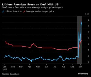 Lithium Americas Soars on Deal With US | Stock more than 40% above average analyst price targets Bruno Venditti | October 7, 2025 | 7:07 am Share Comments Cancel replyYour email address will not be published. Required fields are marked * Save my name, email, and website in this browser for the next time I comment. Δ No comments found. More News Gold price hovers near $5,000 with US and China closed “The market remains in a phase of rebalancing between bulls and bears, lacking clear catalysts to break the range,” analyst says. February 16, 2026 | 09:43 am {{ commodity.name }} {{ post.title }} {{ post.excerpt }} {{ post.date }} First < {{ page }} > Last