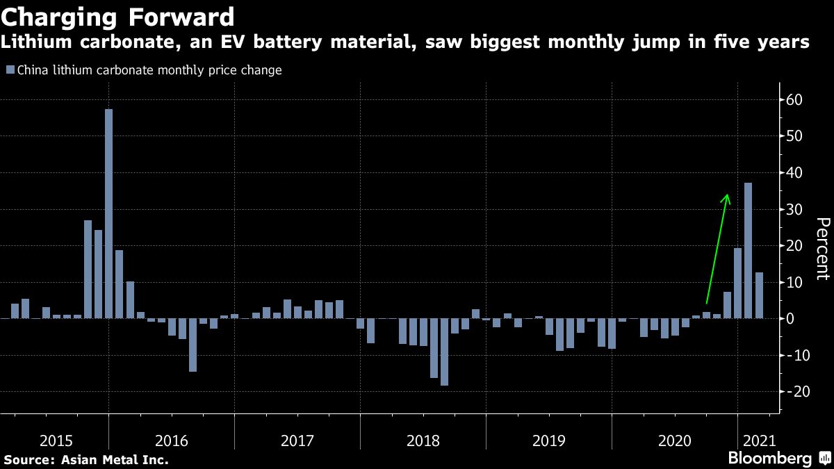 Lithium carbonate, an EV battery material, saw biggest monthly jump in five years Jackson Chen | March 11, 2021 | 12:22 pm Share Comments Cancel replyYour email address will not be published. Required fields are marked * Save my name, email, and website in this browser for the next time I comment. Δ No comments found. More News Mexico and Canada plan joint action on minerals The countries will present an joint action plan on minerals, infrastructure and supply chains in the second half of the year. February 16, 2026 | 09:46 am {{ commodity.name }} {{ post.title }} {{ post.excerpt }} {{ post.date }} First < {{ page }} > Last