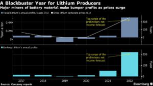 A Blockbuster Year for Lithium Producers | Major miners of battery material make bumper profits as prices surge Bruno Venditti | January 30, 2023 | 6:39 am Share Comments Cancel replyYour email address will not be published. Required fields are marked * Save my name, email, and website in this browser for the next time I comment. Δ No comments found. More News BHP’s Vicuna unveils $18 billion copper investment in Argentina The project is forecast to average 395,000 tons of copper, 711,000 ounces of gold, and 22.2 million ounces of silver annually over its first 25 years. February 16, 2026 | 01:26 pm {{ commodity.name }} {{ post.title }} {{ post.excerpt }} {{ post.date }} First < {{ page }} > Last
