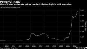 Powerful Rally | China lithium carbonate prices reached all-time high in mid November Jackson Chen | December 8, 2022 | 7:07 pm Share Comments Cancel replyYour email address will not be published. Required fields are marked * Save my name, email, and website in this browser for the next time I comment. Δ No comments found. More News British Columbia investor slapped with C$500,000 fine for mining misrepresentation The false claims included statements that the company was actively mining and producing a mineral. February 16, 2026 | 10:00 am {{ commodity.name }} {{ post.title }} {{ post.excerpt }} {{ post.date }} First < {{ page }} > Last