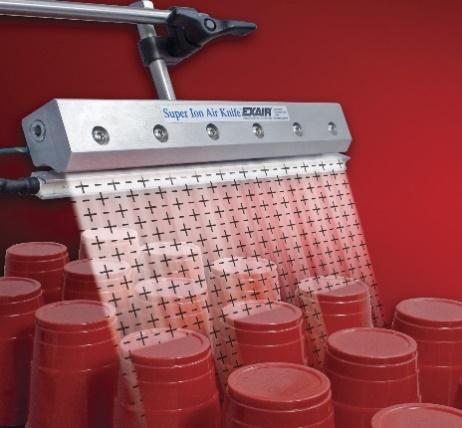 EXAIR’s Longer Super Ion Air Knives neutralise static electricity while blowing away dust and particulates from wide webs and printed surfaces, paper, plastics, wood, acrylic and three dimensional shapes. The wide laminar airstream full of static eliminating ions is effective at high speeds and provides superior cleaning up to 6.1 metres away. Poor print quality, dust attraction, tearing, jamming, and related equipment downtime can be eliminated from processes such as laminating, printing, routing and thermoforming.