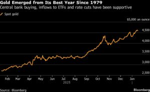 Gold Emerged from Its Best Year Since 1979 | Central bank buying, inflows to ETFs and rate cuts have been supportive Jackson Chen | January 16, 2026 | 7:14 am Share Comments Cancel replyYour email address will not be published. Required fields are marked * Save my name, email, and website in this browser for the next time I comment. Δ No comments found. More News Gold price hovers near $5,000 with US and China closed “The market remains in a phase of rebalancing between bulls and bears, lacking clear catalysts to break the range,” analyst says. February 16, 2026 | 09:43 am {{ commodity.name }} {{ post.title }} {{ post.excerpt }} {{ post.date }} First < {{ page }} > Last
