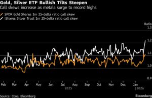 Gold, Silver ETF Bullish Tilts Steepen | Call skews increase as metals surge to record highs Jackson Chen | January 26, 2026 | 5:11 pm Share Comments Cancel replyYour email address will not be published. Required fields are marked * Save my name, email, and website in this browser for the next time I comment. Δ No comments found. More News Gold price hovers near $5,000 with US and China closed “The market remains in a phase of rebalancing between bulls and bears, lacking clear catalysts to break the range,” analyst says. February 16, 2026 | 09:43 am {{ commodity.name }} {{ post.title }} {{ post.excerpt }} {{ post.date }} First < {{ page }} > Last