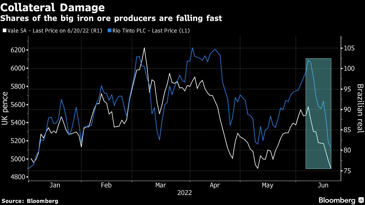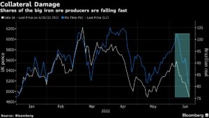 Shares of the big iron ore producers are falling fast Bruno Venditti | June 21, 2022 | 8:24 am Share Comments Cancel replyYour email address will not be published. Required fields are marked * Save my name, email, and website in this browser for the next time I comment. Δ No comments found. More News BHP’s Vicuna unveils $18 billion copper investment in Argentina The project is forecast to average 395,000 tons of copper, 711,000 ounces of gold, and 22.2 million ounces of silver annually over its first 25 years. February 16, 2026 | 01:26 pm {{ commodity.name }} {{ post.title }} {{ post.excerpt }} {{ post.date }} First < {{ page }} > Last