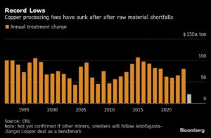 Record Lows | Copper processing fees have sunk after after raw material shortfalls Jackson Chen | December 11, 2025 | 7:27 am Share Comments Cancel replyYour email address will not be published. Required fields are marked * Save my name, email, and website in this browser for the next time I comment. Δ No comments found. More News Iran says potential energy, mining deals on table in talks with US Iran has threatened to strike US bases in the Middle East if it is attacked by US forces but on Sunday took a conciliatory line. February 15, 2026 | 09:34 am {{ commodity.name }} {{ post.title }} {{ post.excerpt }} {{ post.date }} First < {{ page }} > Last