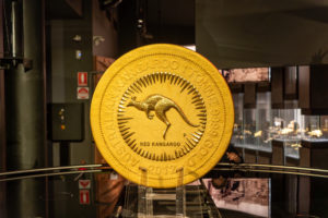The Australian Kangaroo One Tonne Gold Coin – the biggest, heaviest and most valuable gold bullion coin in the world. Perth Mint, Western Australia.