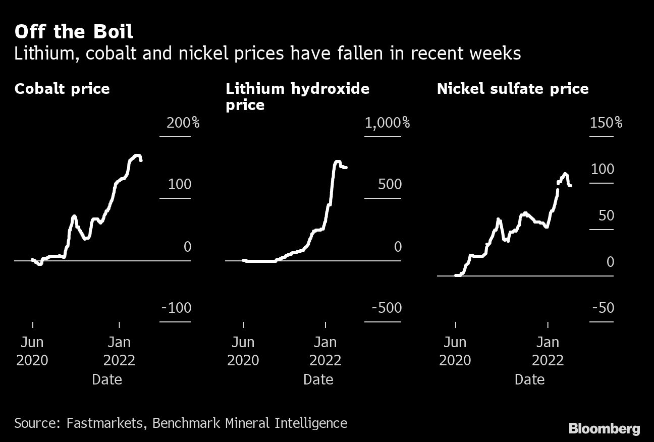 Off the Boil | Lithium, cobalt and nickel prices have fallen in recent weeks Jackson Chen | June 1, 2022 | 9:56 am Share Comments Cancel replyYour email address will not be published. Required fields are marked * Save my name, email, and website in this browser for the next time I comment. Δ No comments found. More News Mexico and Canada plan joint action on minerals The countries will present an joint action plan on minerals, infrastructure and supply chains in the second half of the year. February 16, 2026 | 09:46 am {{ commodity.name }} {{ post.title }} {{ post.excerpt }} {{ post.date }} First < {{ page }} > Last