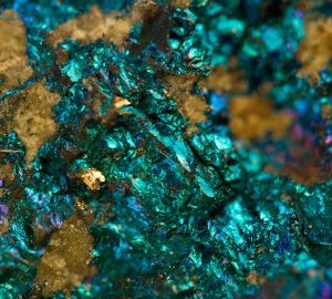 Crystal,nugget, gold, bronze, copper, iron. Macro. Extreme closeup