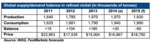 Rick Mills – How to profit from the demands – Global supply-Demand balance in refined nickel – table MINING.COM Staff Writer | January 22, 2016 | 11:09 am Share Comments Cancel replyYour email address will not be published. Required fields are marked * Save my name, email, and website in this browser for the next time I comment. Δ No comments found. More News CHART: EV battery metals index jumps to 27-month high EV battery raw materials bill tops $2 billion for the first time since August 2023 and surging lithium, nickel prices going into 2026 puts slump definitively in the rearview mirror. February 16, 2026 | 11:28 am {{ commodity.name }} {{ post.title }} {{ post.excerpt }} {{ post.date }} First < {{ page }} > Last