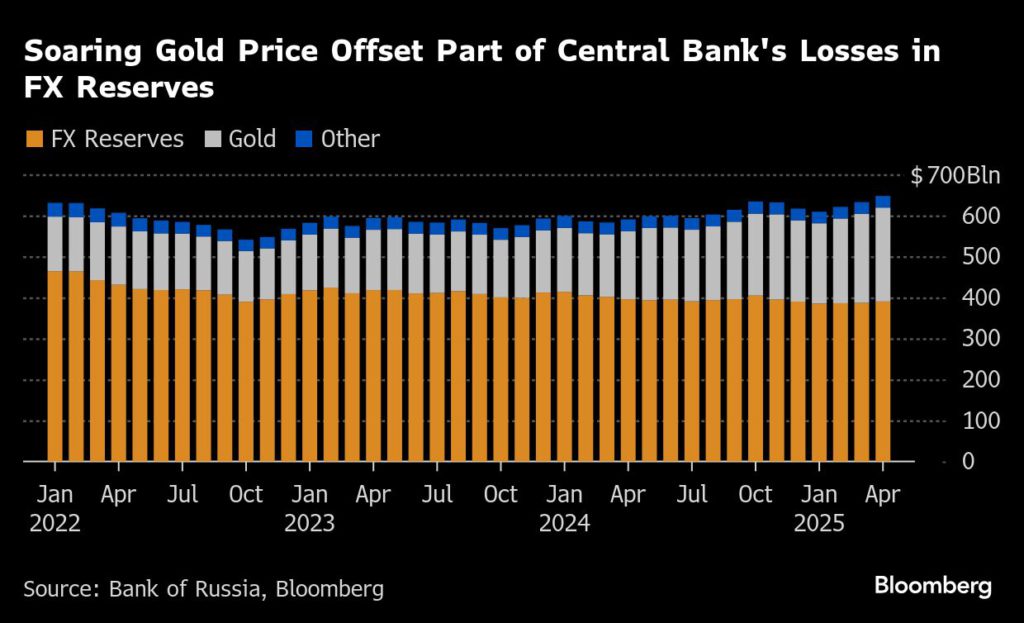 Russia is reaping the benefit of a pre-war gold-buying spree that’s helped offset roughly a third of the frozen assets in its rainy-day fund.