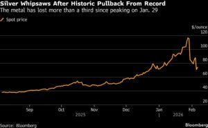 Silver Whipsaws After Historic Pullback From Record | The metal has lost more than a third since peaking on Jan. 29 Jackson Chen | February 6, 2026 | 9:20 am Share Comments Cancel replyYour email address will not be published. Required fields are marked * Save my name, email, and website in this browser for the next time I comment. Δ No comments found. More News BHP’s Vicuna unveils $18 billion copper investment in Argentina The project is forecast to average 395,000 tons of copper, 711,000 ounces of gold, and 22.2 million ounces of silver annually over its first 25 years. February 16, 2026 | 01:26 pm {{ commodity.name }} {{ post.title }} {{ post.excerpt }} {{ post.date }} First < {{ page }} > Last