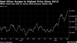 Spot Silver Surges to Highest Price Since 2013 | White metal tops $30 an ounce amid precious metals rally Amanda Stutt | May 17, 2024 | 1:34 pm Share Comments Cancel replyYour email address will not be published. Required fields are marked * Save my name, email, and website in this browser for the next time I comment. Δ No comments found. More News Aluminum and copper prices take breather after explosive start to 2026 Industrial metals have enjoyed a bullish run into the new year. January 13, 2026 | 03:12 pm {{ commodity.name }} {{ post.title }} {{ post.excerpt }} {{ post.date }} First < {{ page }} > Last
