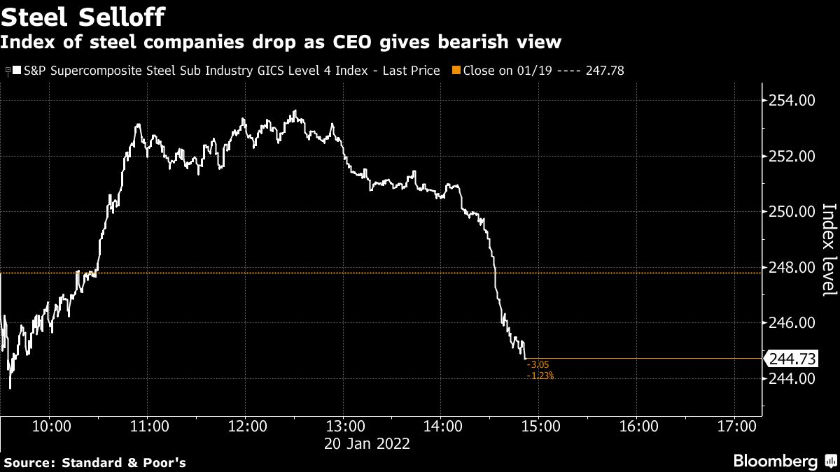 Index of steel companies drop as CEO gives bearish view Jackson Chen | January 20, 2022 | 12:55 pm Share Comments Cancel replyYour email address will not be published. Required fields are marked * Save my name, email, and website in this browser for the next time I comment. Δ No comments found. More News British Columbia investor slapped with C$500,000 fine for mining misrepresentation The false claims included statements that the company was actively mining and producing a mineral. February 16, 2026 | 10:00 am {{ commodity.name }} {{ post.title }} {{ post.excerpt }} {{ post.date }} First < {{ page }} > Last