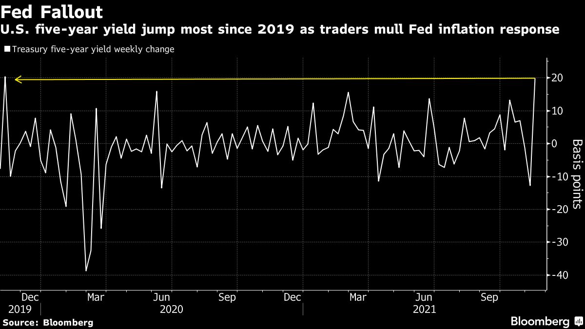 U.S. five-year yield jump most since 2019 as traders mull Fed inflation response