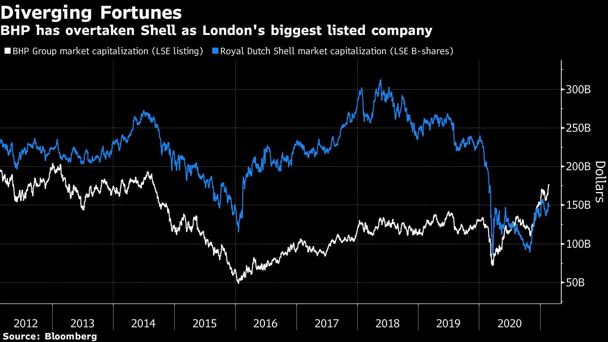 BHP has overtaken Shell as London’s biggest listed company