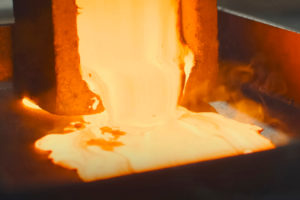Molten gold pours out of mold