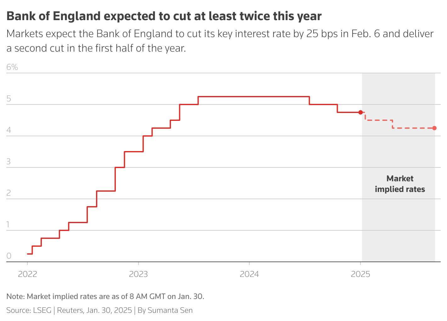 reuters-chart-Bank-of-England-expected-to-cut-at-least-twice-this-year Cecilia Jamasmie | January 31, 2025 | 5:48 am Share Comments Cancel replyYour email address will not be published. Required fields are marked * Save my name, email, and website in this browser for the next time I comment. Δ No comments found. More News Copper price: Global exchange stocks top 1 million tonnes first time in 21 years Copper stocks on the world's biggest metal exchanges have exceeded 1 million tons for the first time since 2004. February 16, 2026 | 12:35 pm {{ commodity.name }} {{ post.title }} {{ post.excerpt }} {{ post.date }} First < {{ page }} > Last