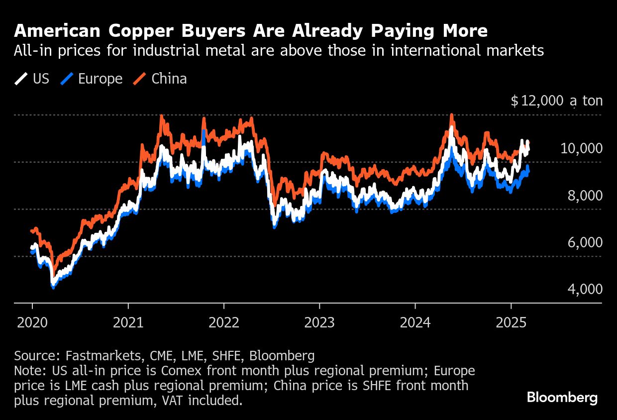 American Copper Buyers Are Already Paying More | All-in prices for industrial metal are above those in international markets Bruno Venditti | March 11, 2025 | 7:06 am Share Comments Cancel replyYour email address will not be published. Required fields are marked * Save my name, email, and website in this browser for the next time I comment. Δ No comments found. More News Copper price: Global exchange stocks top 1 million tonnes first time in 21 years Copper stocks on the world's biggest metal exchanges have exceeded 1 million tons for the first time since 2004. February 16, 2026 | 12:35 pm {{ commodity.name }} {{ post.title }} {{ post.excerpt }} {{ post.date }} First < {{ page }} > Last