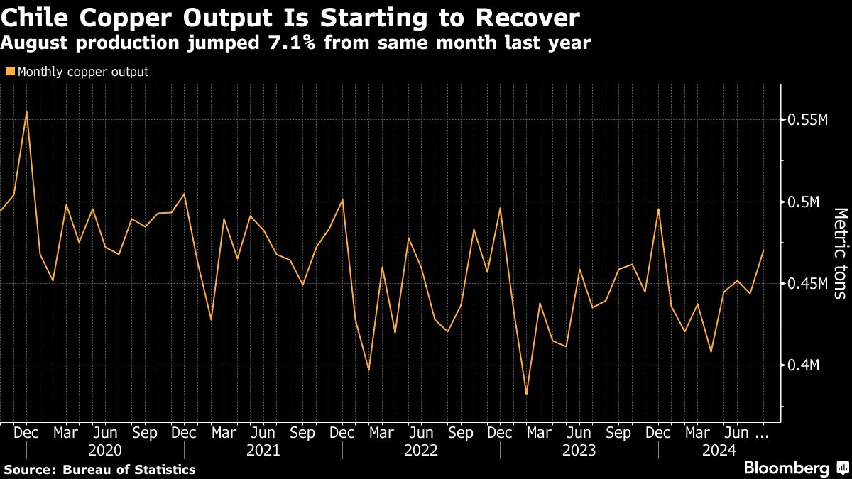 Chile Copper Output Is Starting to Recover | August production jumped 7.1% from same month last year Bruno Venditti | September 30, 2024 | 7:47 am Share Comments Cancel replyYour email address will not be published. Required fields are marked * Save my name, email, and website in this browser for the next time I comment. Δ No comments found. More News African Rainbow Minerals founder steps down from executive role Patrice Motsepe has served as ARM's executive chairman since founding the diversified miner in 2003. February 16, 2026 | 07:46 am {{ commodity.name }} {{ post.title }} {{ post.excerpt }} {{ post.date }} First < {{ page }} > Last