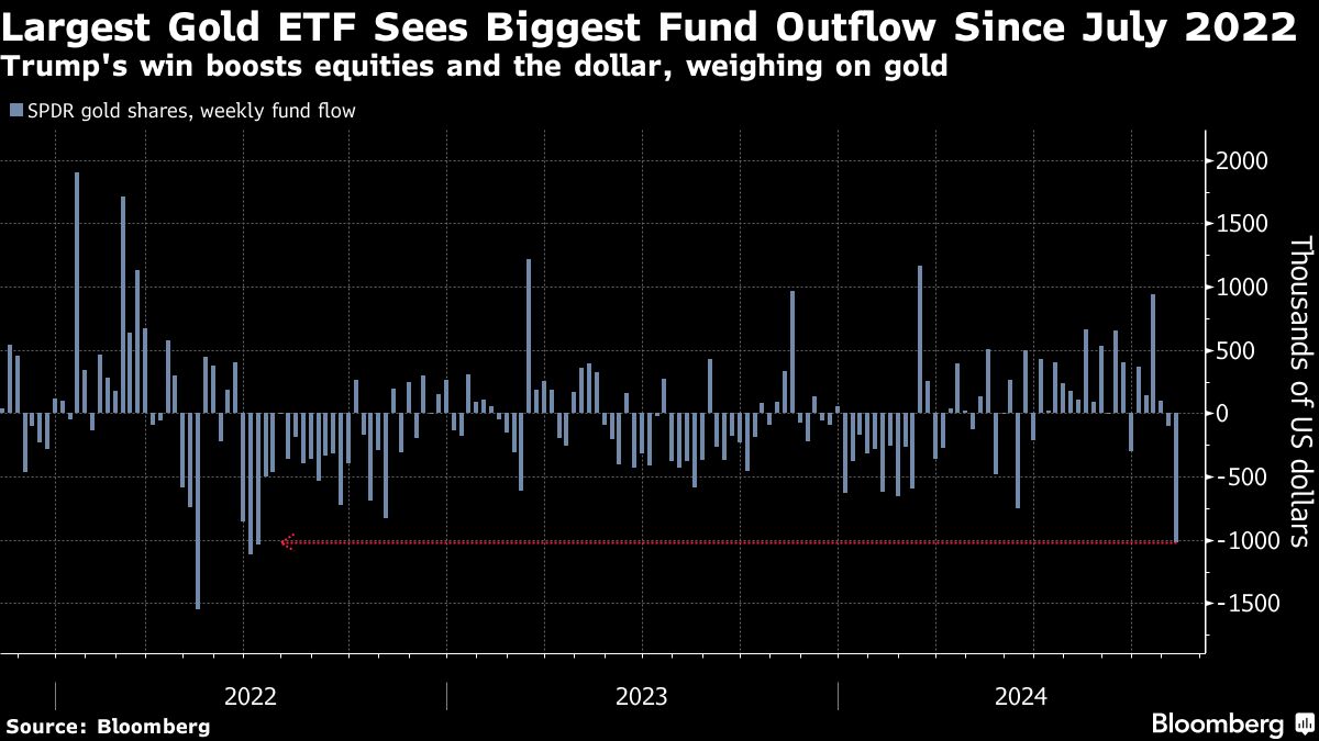 Largest Gold ETF Sees Biggest Fund Outflow Since July 2022 | Trump’s win boosts equities and the dollar, weighing on gold Jackson Chen | November 11, 2024 | 10:38 am Share Comments Cancel replyYour email address will not be published. Required fields are marked * Save my name, email, and website in this browser for the next time I comment. Δ No comments found. More News BHP’s Vicuna unveils $18 billion copper investment in Argentina The project is forecast to average 395,000 tons of copper, 711,000 ounces of gold, and 22.2 million ounces of silver annually over its first 25 years. February 16, 2026 | 01:26 pm {{ commodity.name }} {{ post.title }} {{ post.excerpt }} {{ post.date }} First < {{ page }} > Last