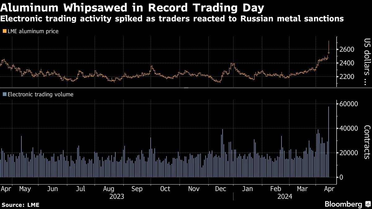 Aluminum Whipsawed in Record Trading Day | Electronic trading activity spiked as traders reacted to Russian metal sanctions Jackson Chen | April 17, 2024 | 6:02 am Share Comments Cancel replyYour email address will not be published. Required fields are marked * Save my name, email, and website in this browser for the next time I comment. Δ No comments found. More News BHP’s Vicuna unveils $18 billion copper investment in Argentina The project is forecast to average 395,000 tons of copper, 711,000 ounces of gold, and 22.2 million ounces of silver annually over its first 25 years. February 16, 2026 | 01:26 pm {{ commodity.name }} {{ post.title }} {{ post.excerpt }} {{ post.date }} First < {{ page }} > Last