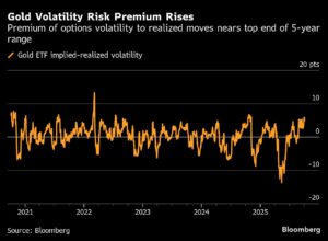 Gold Volatility Risk Premium Rises | Premium of options volatility to realized moves nears top end of 5-year range Jackson Chen | October 5, 2025 | 9:08 am Share Comments Cancel replyYour email address will not be published. Required fields are marked * Save my name, email, and website in this browser for the next time I comment. Δ No comments found. More News BHP’s Vicuna unveils $18 billion copper investment in Argentina The project is forecast to average 395,000 tons of copper, 711,000 ounces of gold, and 22.2 million ounces of silver annually over its first 25 years. February 16, 2026 | 01:26 pm {{ commodity.name }} {{ post.title }} {{ post.excerpt }} {{ post.date }} First < {{ page }} > Last