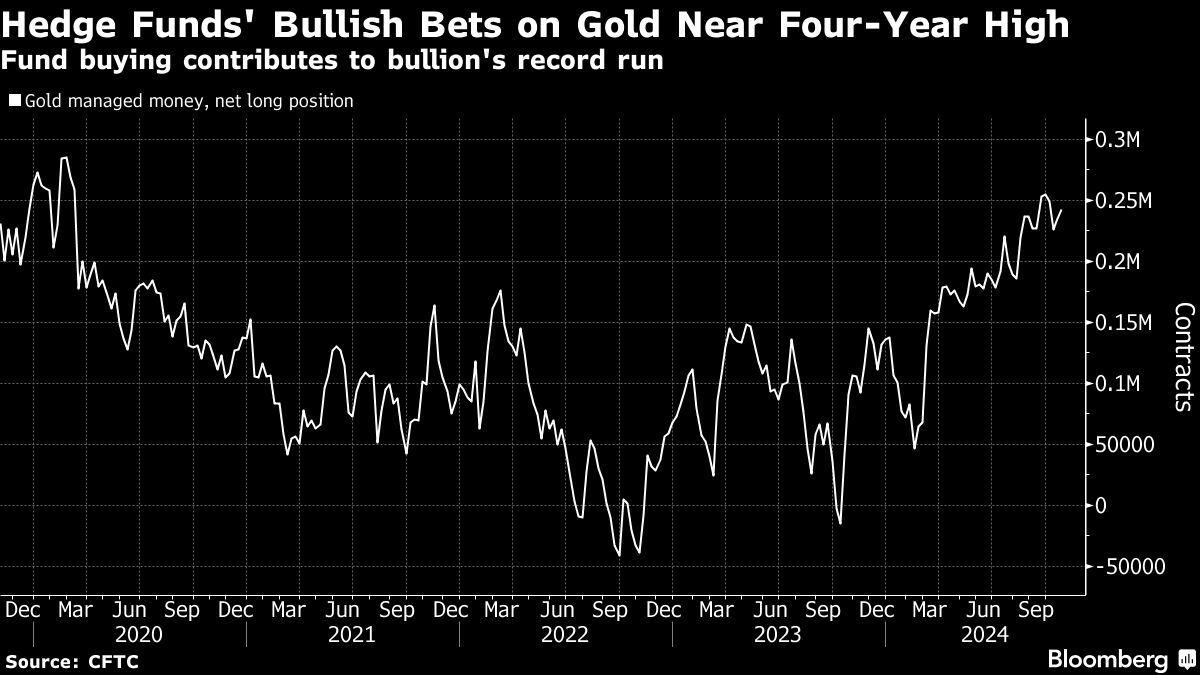 Hedge Funds’ Bullish Bets on Gold Near Four-Year High | Fund buying contributes to bullion’s record run Jackson Chen | November 1, 2024 | 10:02 am Share Comments Cancel replyYour email address will not be published. Required fields are marked * Save my name, email, and website in this browser for the next time I comment. Δ No comments found. More News BHP’s Vicuna unveils $18 billion copper investment in Argentina The project is forecast to average 395,000 tons of copper, 711,000 ounces of gold, and 22.2 million ounces of silver annually over its first 25 years. February 16, 2026 | 01:26 pm {{ commodity.name }} {{ post.title }} {{ post.excerpt }} {{ post.date }} First < {{ page }} > Last