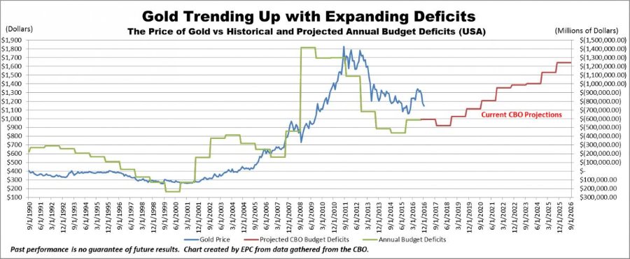 Gold Trending Up with Expanding Deficits Graph