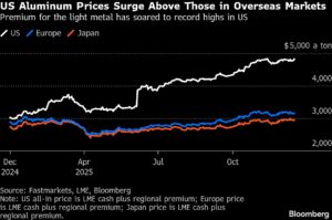US Aluminum Prices Surge Above Those in Overseas Markets | Premium for the light metal has soared to record highs in US Jackson Chen | December 16, 2025 | 2:52 pm Share Comments Cancel replyYour email address will not be published. Required fields are marked * Save my name, email, and website in this browser for the next time I comment. Δ No comments found. More News Mexico and Canada plan joint action on minerals The countries will present an joint action plan on minerals, infrastructure and supply chains in the second half of the year. February 16, 2026 | 09:46 am {{ commodity.name }} {{ post.title }} {{ post.excerpt }} {{ post.date }} First < {{ page }} > Last