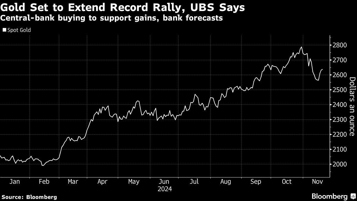 Gold Set to Extend Record Rally, UBS Says | Central-bank buying to support gains, bank forecasts Bruno Venditti | November 20, 2024 | 5:38 am Share Comments Cancel replyYour email address will not be published. Required fields are marked * Save my name, email, and website in this browser for the next time I comment. Δ No comments found. More News Gold price hovers near $5,000 with US and China closed “The market remains in a phase of rebalancing between bulls and bears, lacking clear catalysts to break the range,” analyst says. February 16, 2026 | 09:43 am {{ commodity.name }} {{ post.title }} {{ post.excerpt }} {{ post.date }} First < {{ page }} > Last