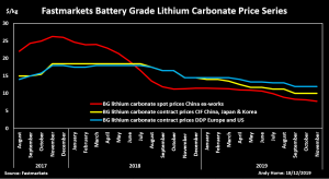 Lithium-Pricing-Dec-2019 Amanda Stutt | December 18, 2019 | 11:40 am Share Comments Cancel replyYour email address will not be published. Required fields are marked * Save my name, email, and website in this browser for the next time I comment. Δ No comments found. More News Lithuania may sign minerals deal with US if EU moves too slowly For months, the US and its trading partners have worked toward a cooperation to wean their supply chains off China. February 13, 2026 | 04:24 pm {{ commodity.name }} {{ post.title }} {{ post.excerpt }} {{ post.date }} First < {{ page }} > Last