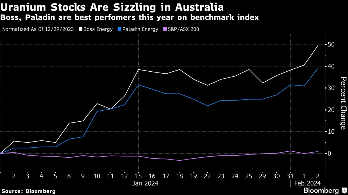 Uranium Stocks Are Sizzling in Australia | Boss, Paladin are best perfomers this year on benchmark index Jackson Chen | February 1, 2024 | 7:48 pm Share Comments Cancel replyYour email address will not be published. Required fields are marked * Save my name, email, and website in this browser for the next time I comment. Δ No comments found. More News BHP’s Vicuna unveils $18 billion copper investment in Argentina The project is forecast to average 395,000 tons of copper, 711,000 ounces of gold, and 22.2 million ounces of silver annually over its first 25 years. February 16, 2026 | 01:26 pm {{ commodity.name }} {{ post.title }} {{ post.excerpt }} {{ post.date }} First < {{ page }} > Last
