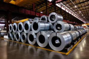 Rolls of galvanized steel sheet inside the factory or warehouse