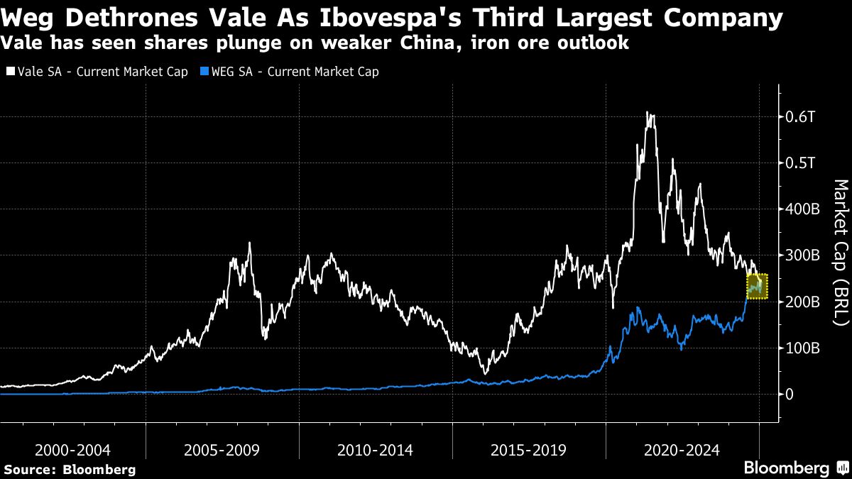 Weg Dethrones Vale As Ibovespa’s Third Largest Company | Vale has seen shares plunge on weaker China, iron ore outlook Jackson Chen | January 27, 2025 | 9:47 am Share Comments Cancel replyYour email address will not be published. Required fields are marked * Save my name, email, and website in this browser for the next time I comment. Δ No comments found. More News Mexico and Canada plan joint action on minerals The countries will present an joint action plan on minerals, infrastructure and supply chains in the second half of the year. February 16, 2026 | 09:46 am {{ commodity.name }} {{ post.title }} {{ post.excerpt }} {{ post.date }} First < {{ page }} > Last