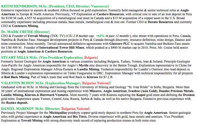 Velocity Minerals – exciting gold play in Bulgaria – team