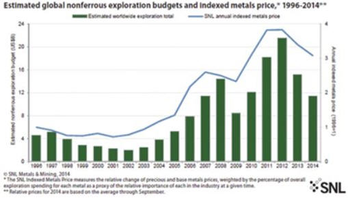What’s your edge – exploration budgets and indexed metals price graph